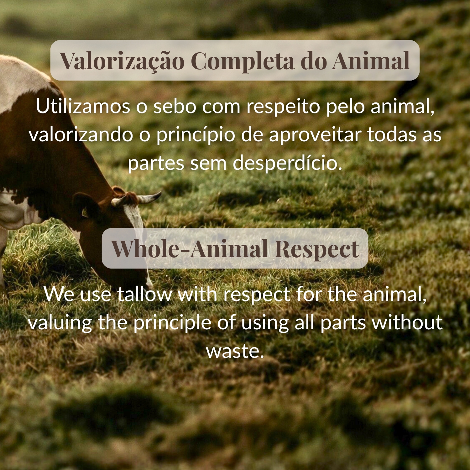 Cada bálsamo é uma extensão desta filosofia, um gesto de cuidado que nasce da gratidão, do respeito pelos animais e pela natureza, da tradição e do desejo de criar soluções honestas, nutritivas e profundamente compatíveis com a pele humana.
